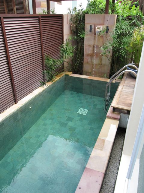 The first impression of the hotel was very good – we booked a Garden Villa which is pretty big, decorated with great attention to detail and has not only a very nice walk-in rainfall-type shower, but its own little fresh water outdoor pool!! We were greeted by one of the owners of the hotel, Stephen, who’s accent isn’t anywhere as Northern as the hotel’s web site suggests, and were then introduced to the different facilities (Spa, Restaurant, Gym, Pool, Beach) before shown to our room. We had a late lunch and an even later dinner and sampled some of the Thai food offered by the hotel restaurant, which was okay but not amazing. We will try a little more tomorrow and then decide whether we will scout some other food (which could prove to be easier said than done – the hotel is kind of isolated).