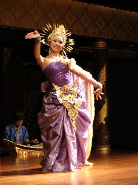Ambience: KK 6/10 (big open air area, you take off your shoes as you come in to sit on the floor for dinner and the show; nice surroundings with replica temple-like buildings); SRM 9/10 (from arrival at the Mandarin Oriental with its great lobby, walking through the garden to take the ferry across to SRM, which is located on the other river bank, to the plush large dining room with its center stage: this is top notch stuff. You can chose whether to sit on the floor or at a normal table. One point reduced due to a fair number of mosquitos giving us a hard time – at least as many as in the open air KK!)